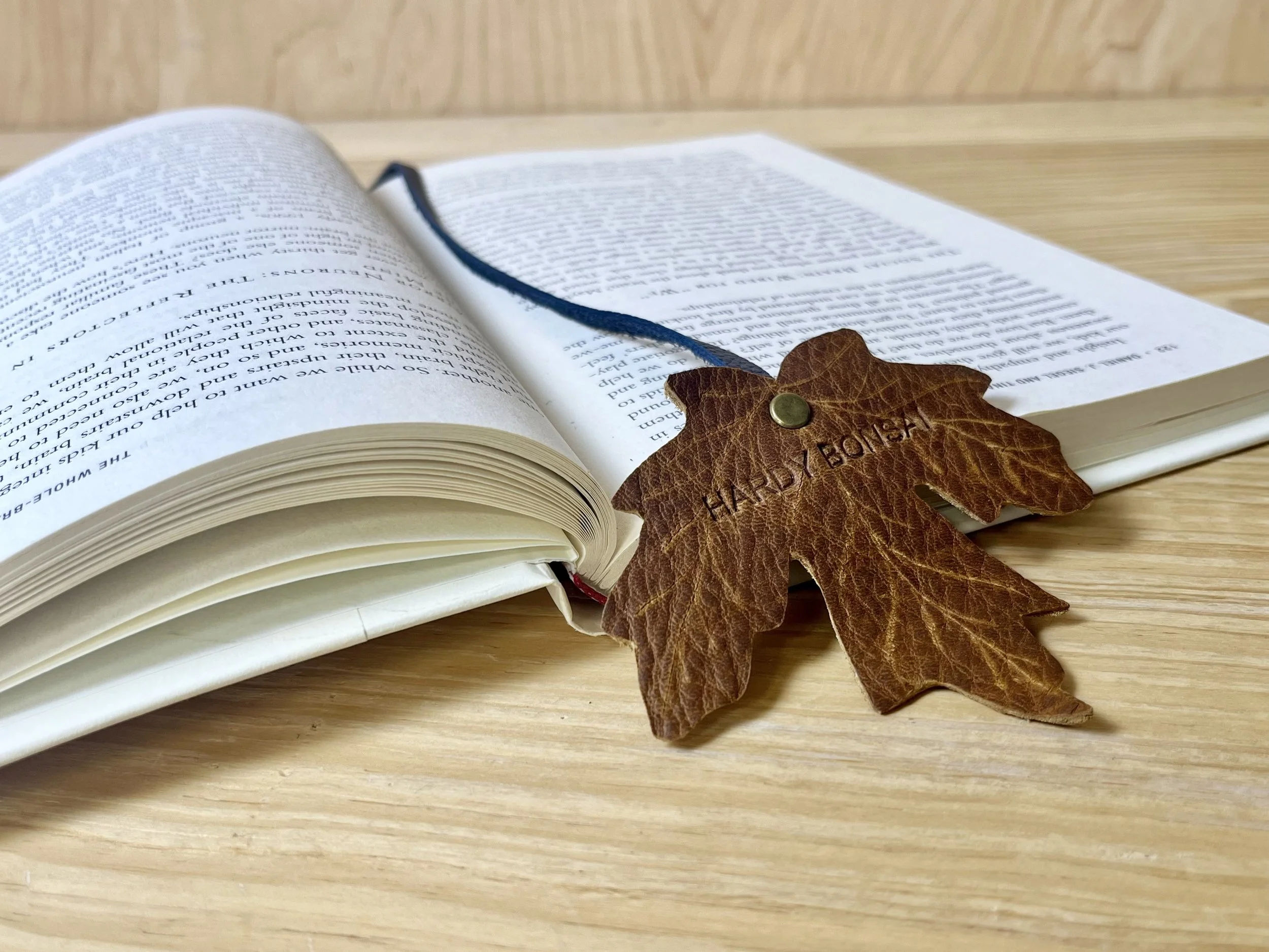 Accessories Leather Leaf Bookmark- Redbud $12.00 Only 1 left in stock Leather Leaf Bookmark- Sugar Maple $12.00 Leather Leaf Bookmark- White Oak $12.00 Leather Leaf Bookmark- Aspen $12.00 Leather Leaves Pendant- Aspen & White Oak $18.00 Leather Leaves Pendant- Redbud & Sugar Maple $18.00